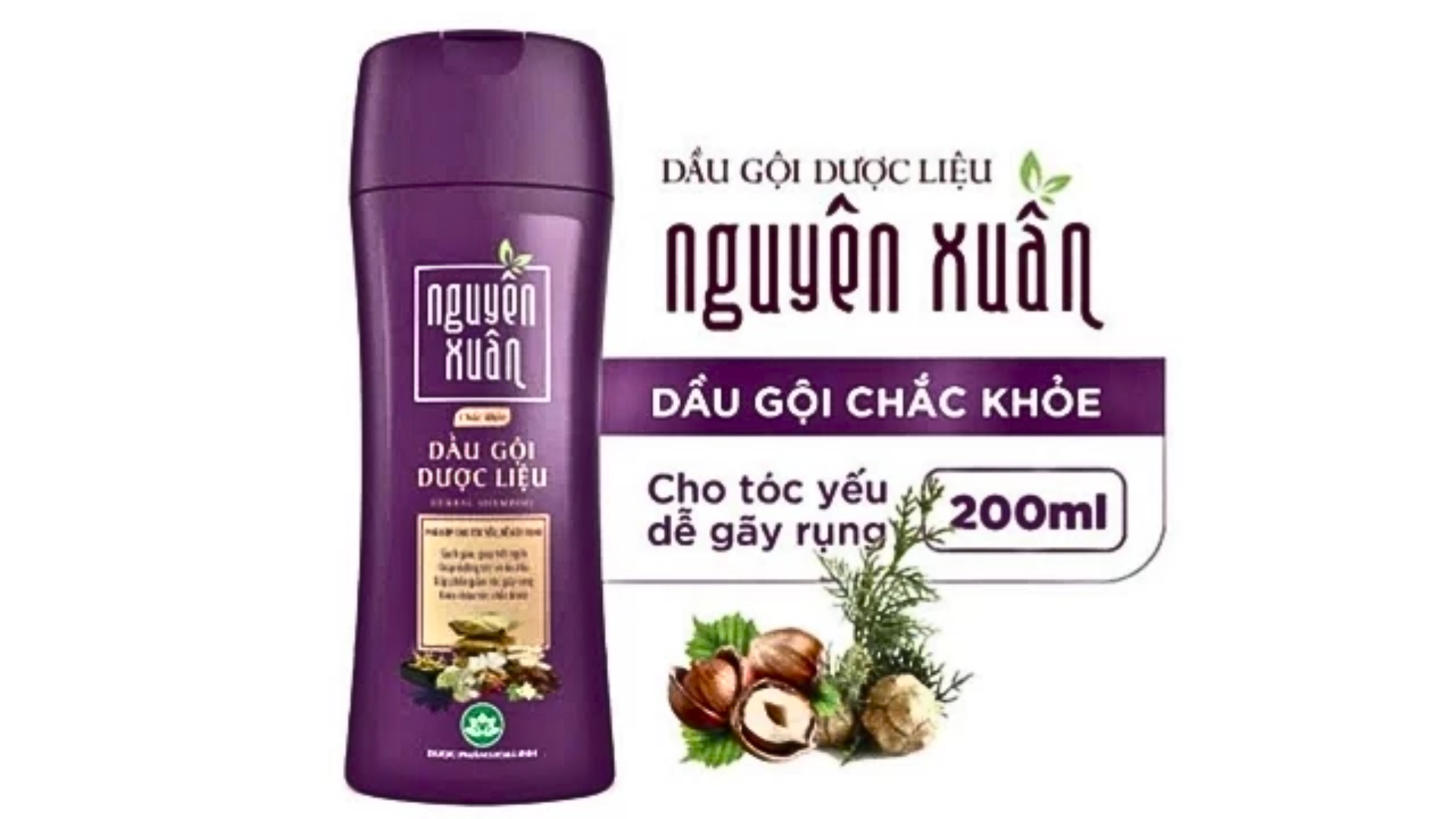 Dầu Gội Dược Liệu Nguyên Xuân TÍM Chắc Khỏe Giảm Gãy Rụng Dành Cho Tóc Yếu, Tóc Gãy, Tóc Chẻ Ngọn 200ML