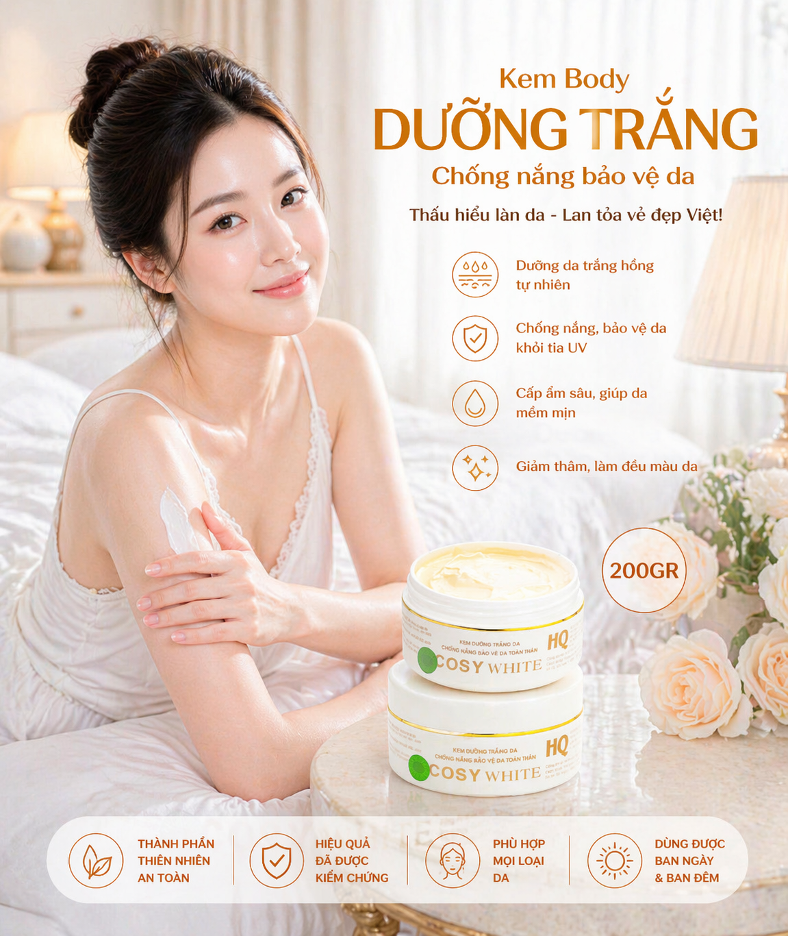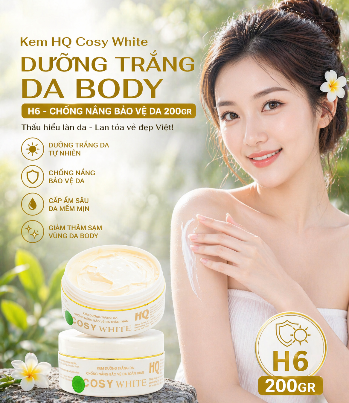 Sau đó dùng một lượng Bạch Sâm Kem Trắng Toàn Thân CD7 vừa đủ thoa lên làn da
