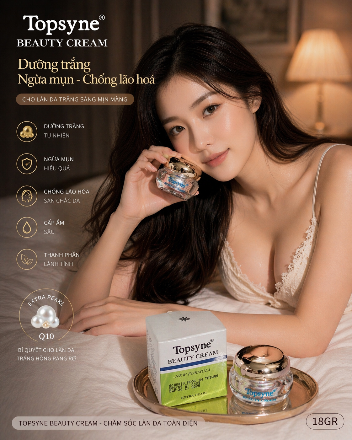 Kem dưỡng da hiệu Topsyne được chiết xuất từ tinh dầu Mink, tinh chất lô hội, collagen và được kết hợp cùng với các phương thuốc đặc biệt.