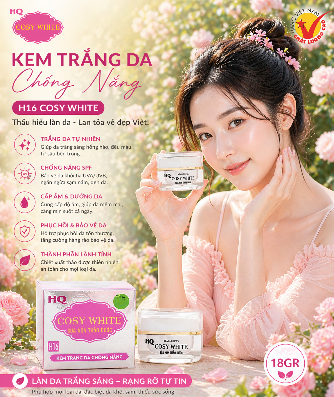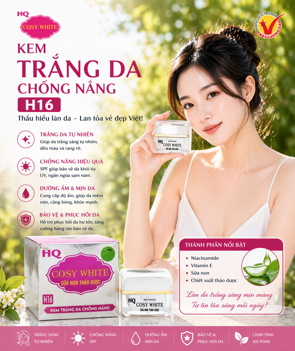Kem HQ Cosy White H16 Trắng Da Chống Nắng 18GR