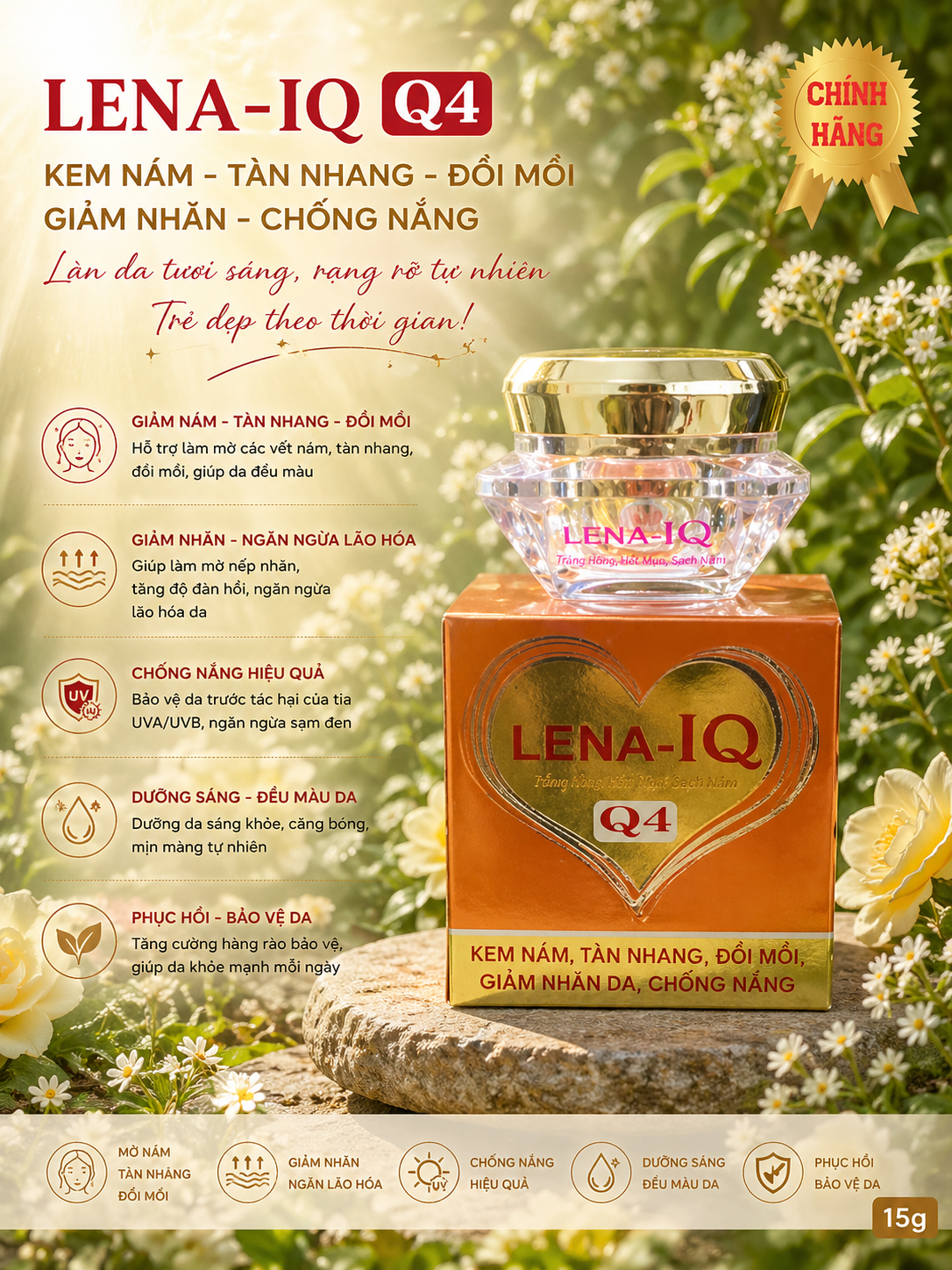 Kem nám - Tàn nhang - Đồi mồi - Giảm nhăn - Chống nắng - Ngăn ngừa lão hóa da LENA-IQ Q4 (20g)