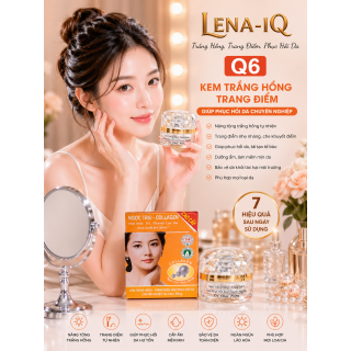 Kem trắng hồng - Trang điểm - Giúp phục hồi da LENA-IQ Q6 (30g) có tác dụng làm trắng mịn da, tái tạo bề mặt, giữ ẩm, chống lão hóa, làm giảm thâm, nám, sạm và đánh bật dấu hiệu nám tiềm ẩn bên trong, giải độc tố, giúp phục hồi da hư tổn, làm mờ vết nhăn, tăng tính đàn hồi của da, cho bạn làn trắng sáng, mềm mại, mịn màng. Có thể dùng làm kem trang điểm hằng ngày. Đặc biệt không ăn nắng.