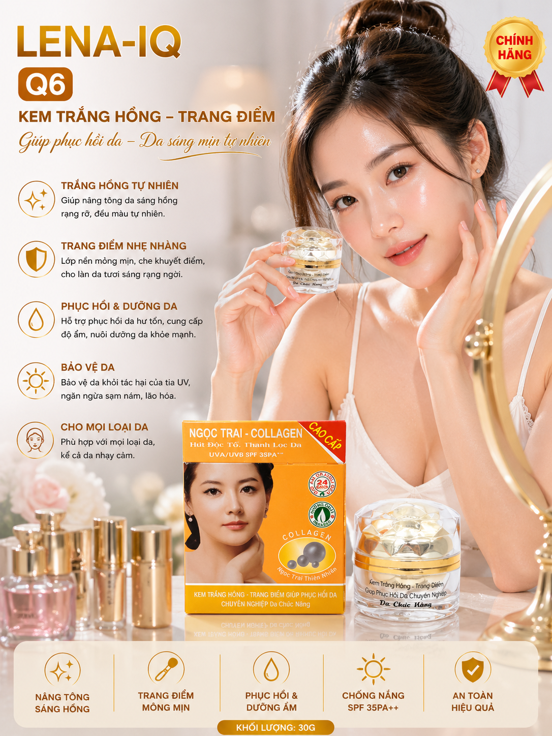 Kem LENA-IQ Q6 trắng hồng - Trang điểm - Giúp phục hồi da (30g)