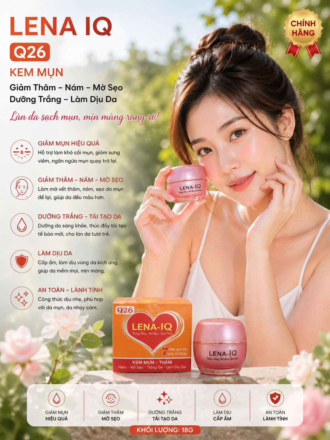 Kem Mụn LENA IQ Q26 - Giảm Thâm, Nám, Mờ Sẹo, Dưỡng Trắng, Làm Dịu Da 18g